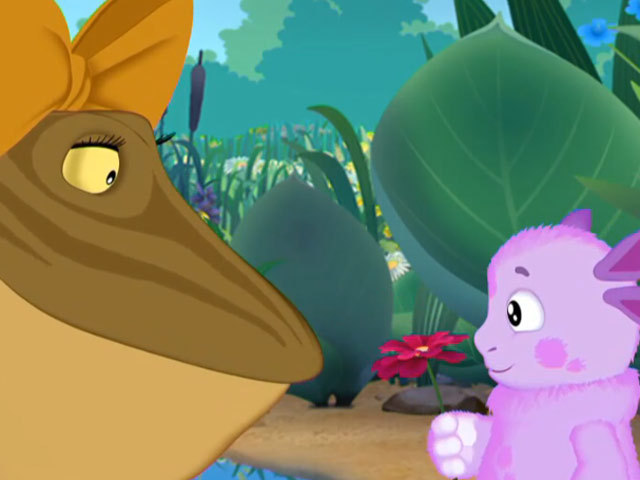 Лунтик и Кузя хотят превратить Жабу Клаву в принцессу.